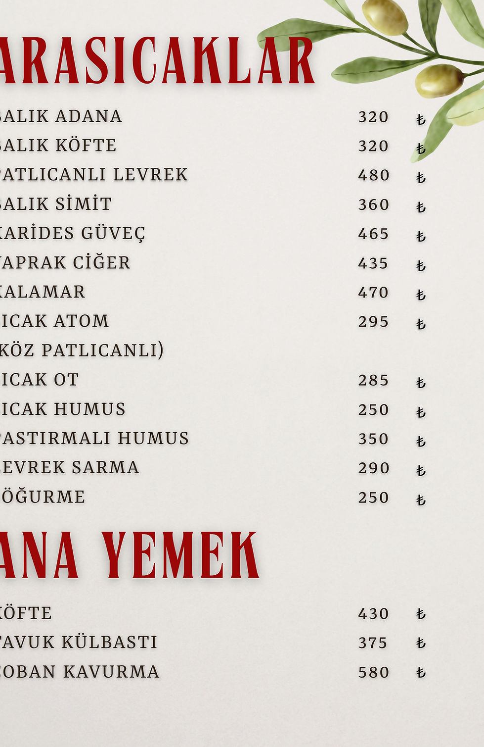 Anason Ocakbaşı Menü
